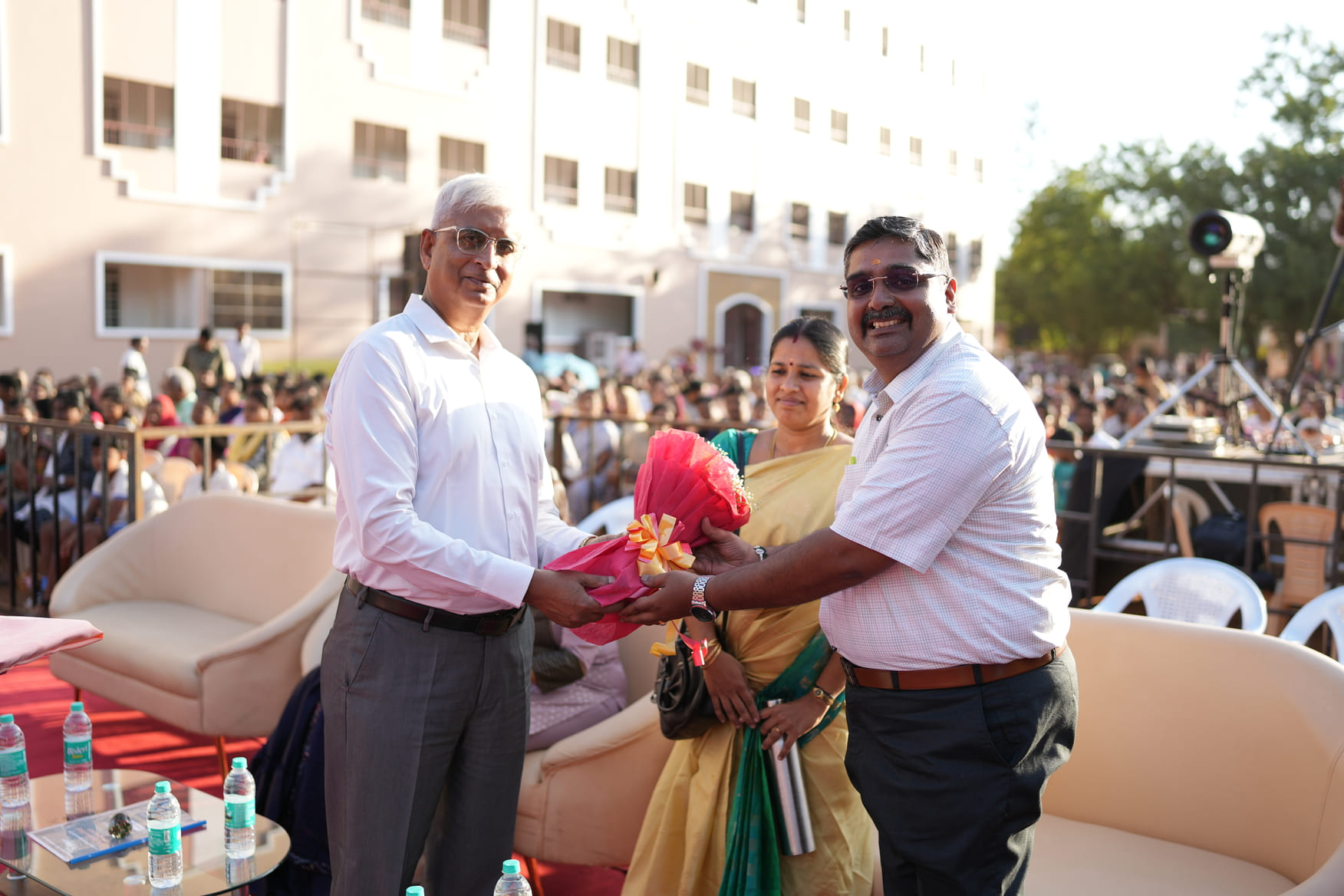 Guest, an alumnus of Bharathi, shared words of wisdom about the purpose and goals of school life in his address. He honoured the toppers of