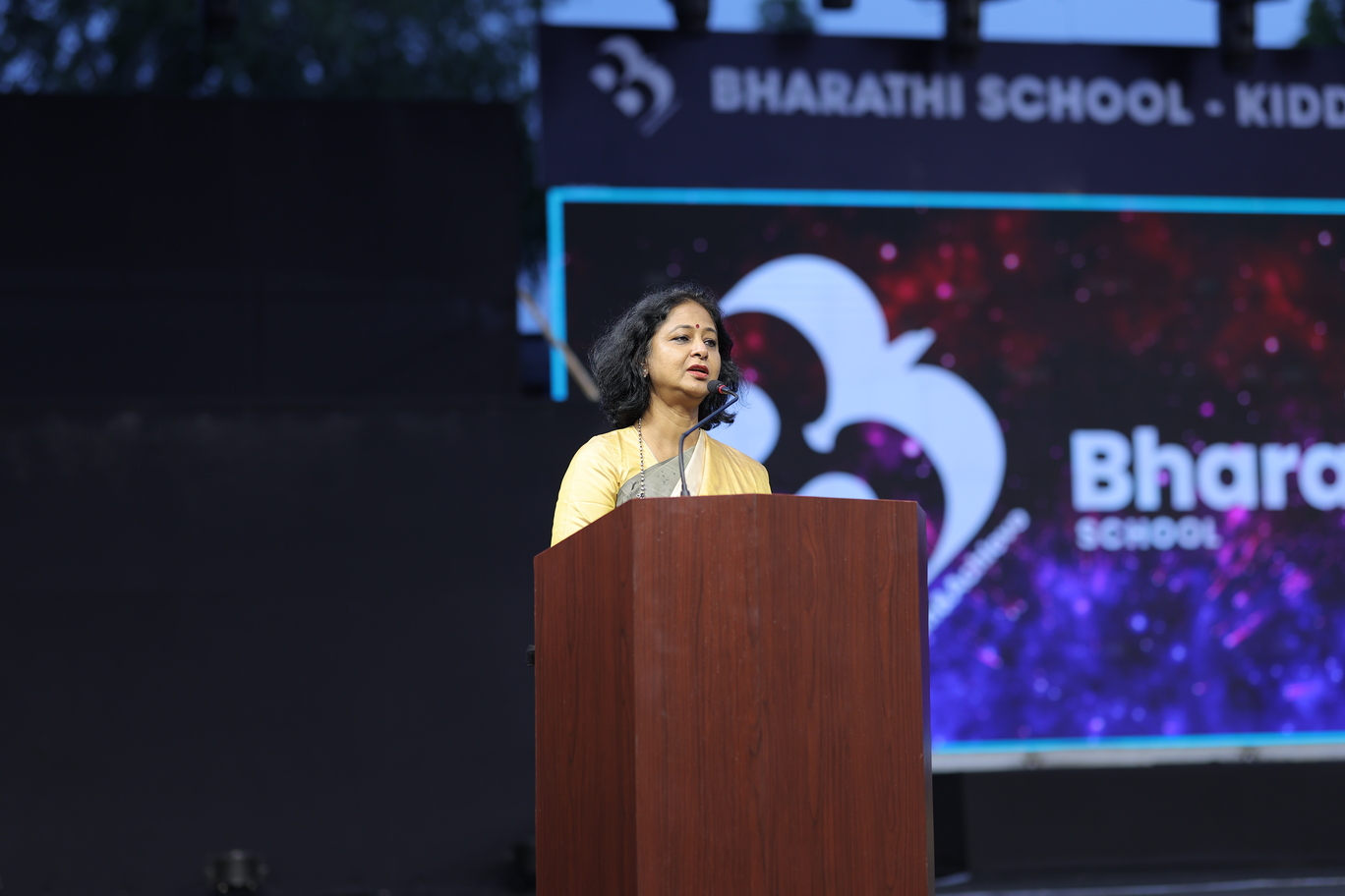 Dr. Vasudha Prakash, the founder of V Excel Educational Trust, was the Chief Guest and delivered a thought-provoking speech