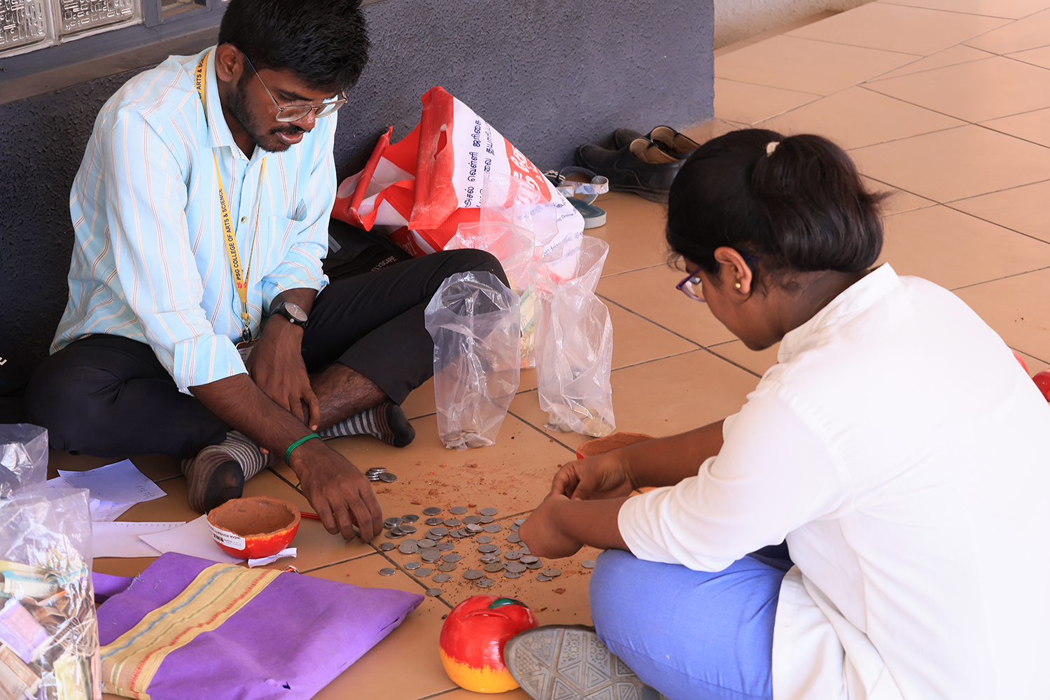 As part of this initiative, the Bharathians participated in the Poverty Solutions programme by receiving the piggy banks from the Shanti Ashram and saved small amounts over time. The collected savings were later given to the staff members of Shanti Ashram, who, in turn, will give them to the needy. In addition, on the occasion of the International Day for the Eradication of Poverty 2025, the student council members collected rice, pulses, grains, and other essential provisions from the student body and teachers. They donated the provisions to the Shanti Ashram's Food Bank.