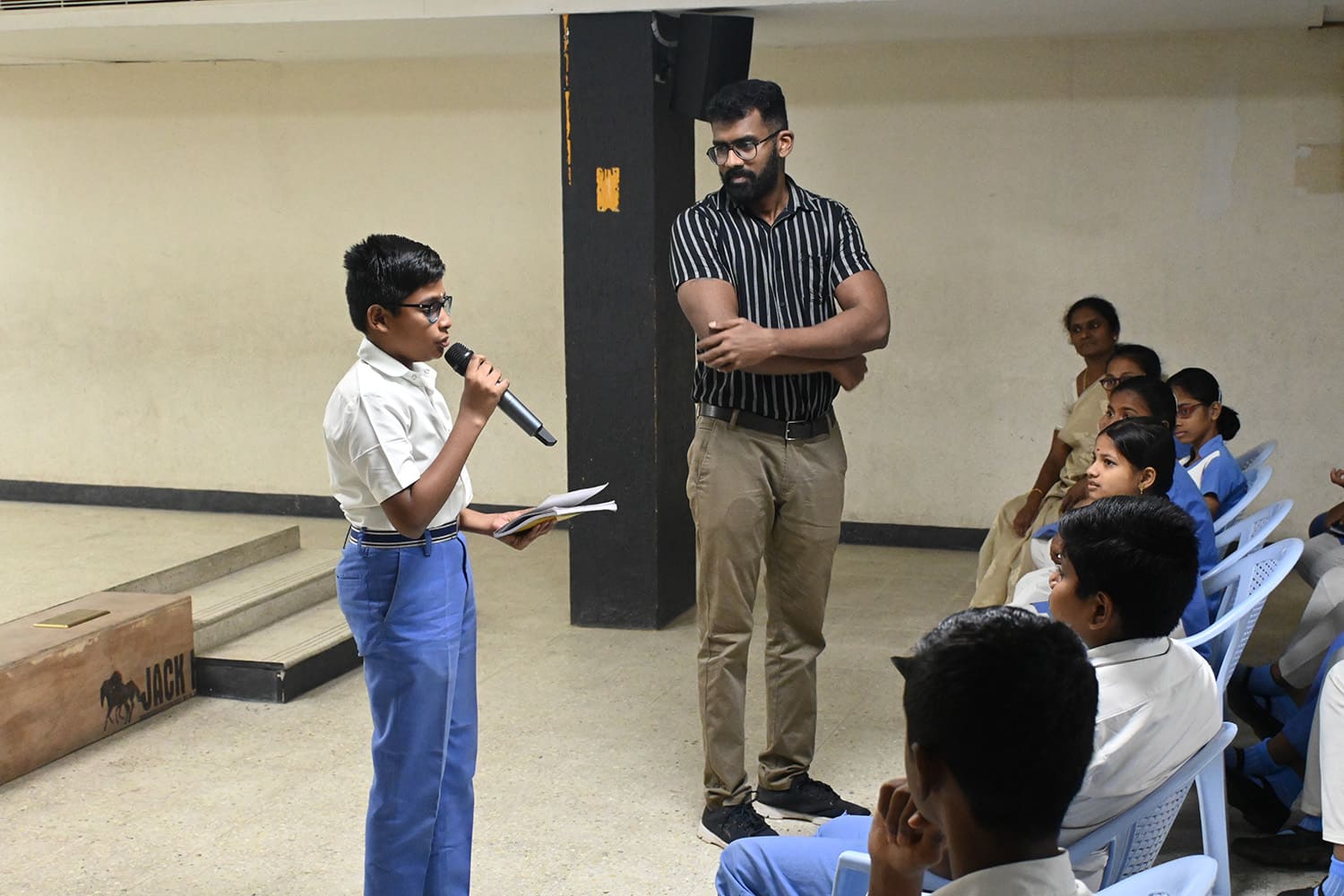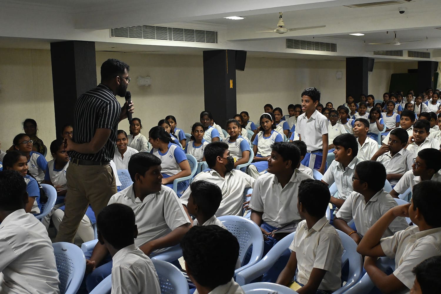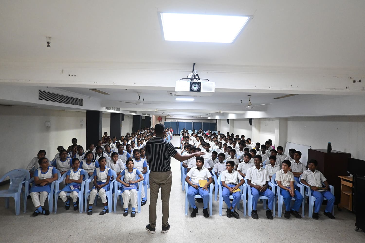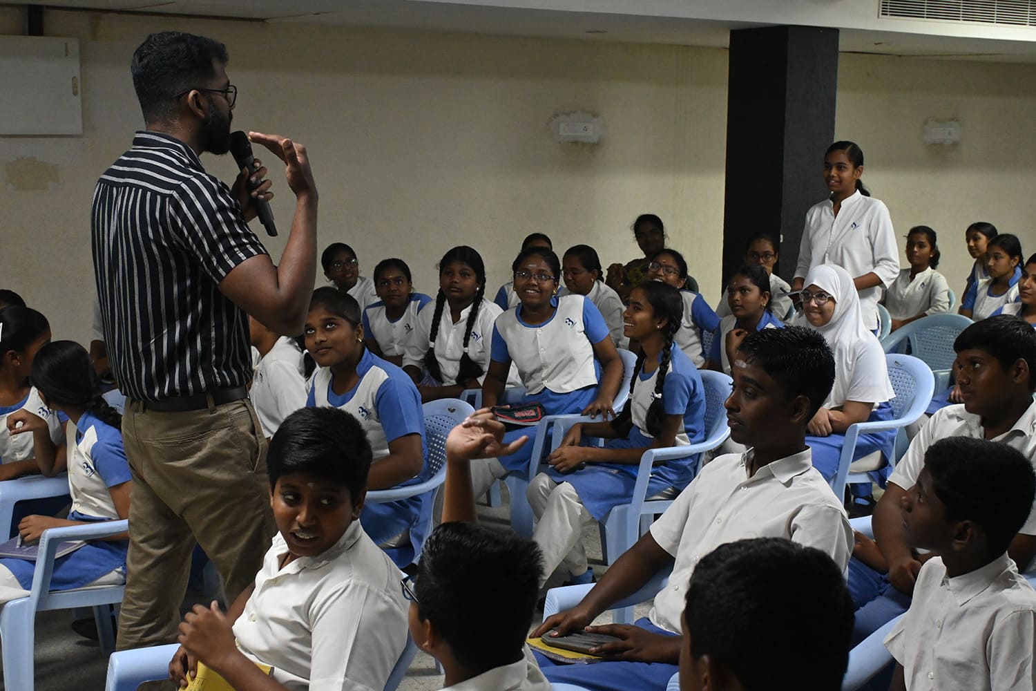 Bharathi School conducted a career guidance programme for grade 8 students in October 2023 to help them choose their academic streams in grade 9. The syllabus for ICSE Class 9 comprises multiple important subjects, which lay the foundation for further studies. The syllabus is divided into three groups. Group I includes English, second languages, History and Civics, and Geography, which are mandatory subjects. Group II includes Mathematics, Science, Computer Science, Commercial Studies, and others. Students may choose any two subjects from Group II. Finally, one subject from Group III must be selected (e.g., art, performing arts, physical education, and the like). Mr. Anand Jeyasingh, a Certified Career Counsellor, was the resource person for this interactive session. He shed light on how to choose subjects that align with personal goals, ambitions, and personalities. He responded to the questions posed by the students by giving them relevant examples.